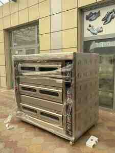 Mağaza25 Azn Çörək və şirniyyat üçün soba Çin istehsalı Qaz ilə 6 Tepsili 3 mərtəbəli model: HGB-60Q Hər gözünə 2 Tepsi yerləşir Padnos ölçüsü 40 x 60 sm Temperatur derecesi 20°C-400°C Öz Çəkisi 250 kq Ölçüsü 1330x890x1705mm Ic