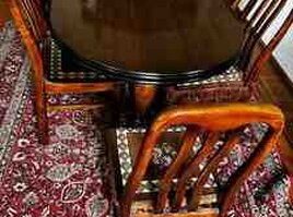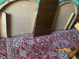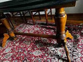 Taxta stol, stullari ile bir yerde islenme qoz agaci taxtadan, mohkemdir, boyutmek olur, rahatliqla ayrilir lifte yerlesir temiz taxta qoz agacindan, Mebel 2006 dan bizdedir birinci sahibiyik, unvan samaxinka, real alici ile razilasariq