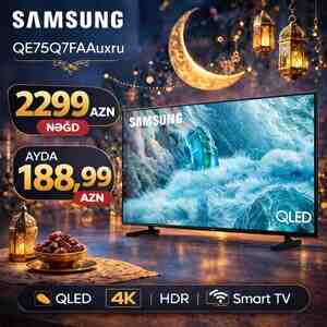 4499 Azn Televizir shivaki 2025 model Diaqonal: 75"(192 sm) Televizir şhıvakı 4 ka 192 sm HD icazosi: 4K UHD Icazo: 3840x2160 HDR formatlari: HDR10, HLG LED-isiq: boli Televizorun formau: 16:9 Ekranm venilonma tezlivi: 60