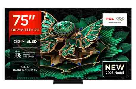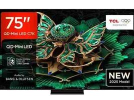 239 Azn TCL 75C8K (2025) 75 Zoll 4K QD-Mini LED HDR PREMIUM TV mit Google TV, 144Hz Motion Clarity Pro und Audio by Bang & Olufsen Экран - Тип: Mini-LED - Диагональ экрана: 75" (191 см) - Тип матрицы: VA -