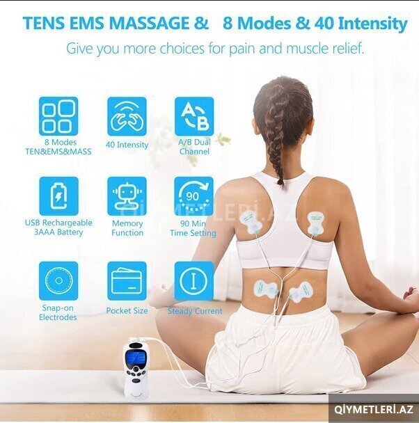 - TENS/elektrik impuls masajı prinsipi ilə işləyir; əzələ stimullaşdırması və rahatlama üçün nəzərdə tutulub.