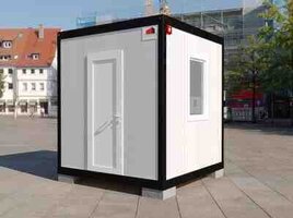 Şirkət Mühafizə konteyneri Uzunluq: 1.8m En: 1.8m Hundurluk: 2.6m - Divar və tavan: Sandviç panel 60mm (Türkiyə istehsalı, yanğına davamlı, Panelsan firması) - İzolyasiya: Polyurethane - Döşəmə: OSB panel, linoleum - Elektrik