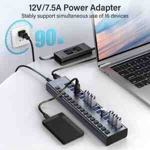 [Multi USB 3.0 Port HUB] İstənilən uyğun sistemə 16 port USB 3.0 portunu asanlıqla əlavə edin. Bu Adaptorlu USB Hub şarjı hər port üçün 5V/2.4A-a qədər sürətləndirir. 12V/7.5A güc adapteri ilə nəinki 2.4A-a qədər doldurma gücünü təmin edə bilər, həm də məlumat ötürülməsini stabil saxlayır.