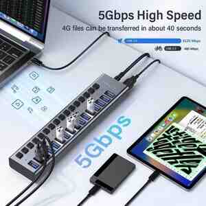 [Yüksək Sürətli Məlumat ötürülməsi] - Bu Güclü USB Hub 5 Gbps-ə qədər məlumat sürətini təmin edir, bu da HD filmi saniyələr ərzində ötürəcəyiniz deməkdir və o, USB 2.0/1.1 ilə uyğun gəlir.