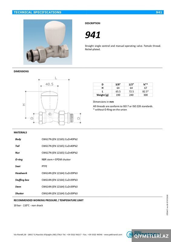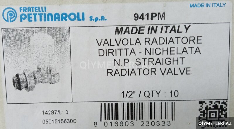 Radiator ventili düz Pettinaroli - İtaliya brendi və italiya istehsalı.!