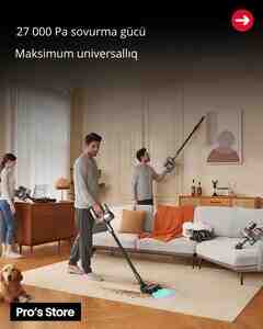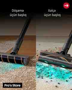 120 Azn Əsas xüsusiyyətlər Sovurma gücü: 20.000 Pa Mop rulonu sürəti: 450 RPM İş vaxtı: təxminən 60 dəqiqə (Eco rejimində) Texnologiya: DirTect sensor sistemi — kirlilik səviyyəsinə görə gücü avtomatik artırır Batareya: 4000