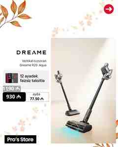 805 Azn Robot-tozsoran Dreame X40 Ultra Nəğd alışda 2200 Azn +ƏDV çeki 2499 azn 12 aylıq faizsiz taksitlə +ƏDV çeki Həm təmizləyir, həm silir, həmdə özü-özünü yuyur! 12 000 Pa sovurma gücü Kənara çıxan mop texnologiyası Kənara