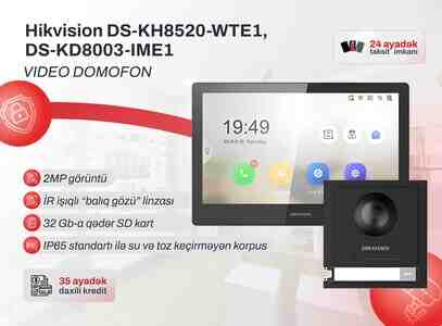 450 Azn Hikvision DS-KV8213-WME1 + DS-KH8520-WTE1 – Video Domofon Dəsti (2 il zəmanət) Dəstə daxildir: DS-KV8213-WME1 – Çağrı Paneli DS-KH8520-WTE1 – Monitor Çağrı Paneli (DS-KV8213-WME1) Özəllikləri: Kamera Çözünürlüyü: 2