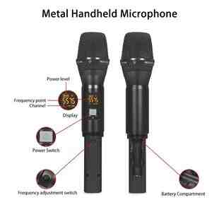 EYK UHF 2 Channels Wireless Microphone System with Metal Recording Karaoke Handheld Mic Rechargeable Receiver 50m Receive
