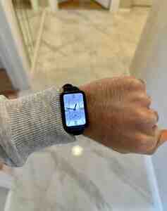 Ağıllı saat – düzbucaqlı böyük ekranlı, qara silikon qayışlı.