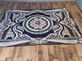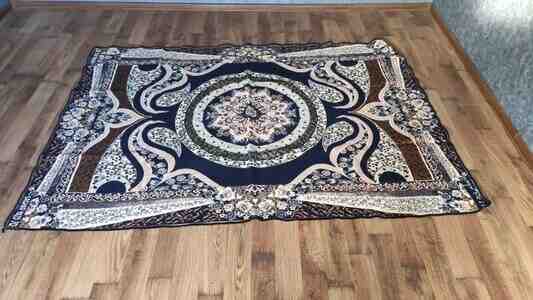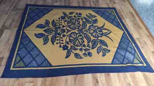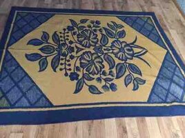 - Qalın yun tipli tünd-göy/sarı naxışlı böyük xalça-pled (çiçək ornamentli).