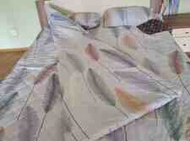 Pərdə tülnən bir yerdə.Aksesuarları da var divara vurulur. Rərdənin hündürlüyü 2.80m, eni 2.50m +2.50m. 180 man alınıb. Tülün hünd- 2.80m, eni 6 m Köç ilə bağlı ucuz giymətə satılır. Malın tipi: Pərdələr və