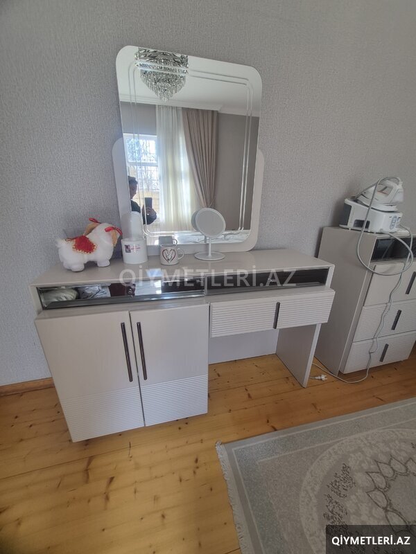 Yataq destinin mebeli - 3000 azn satış qiyməti (taxt uzunlugu 2 metr, eni 1.80 sm, taxt alti bazalidir, taxtin qabaginda alti bazali bufik, guzgulu kamot + oturacaq bufik, 2 eded tumbalar, boy guzgusu ve pastelnica,