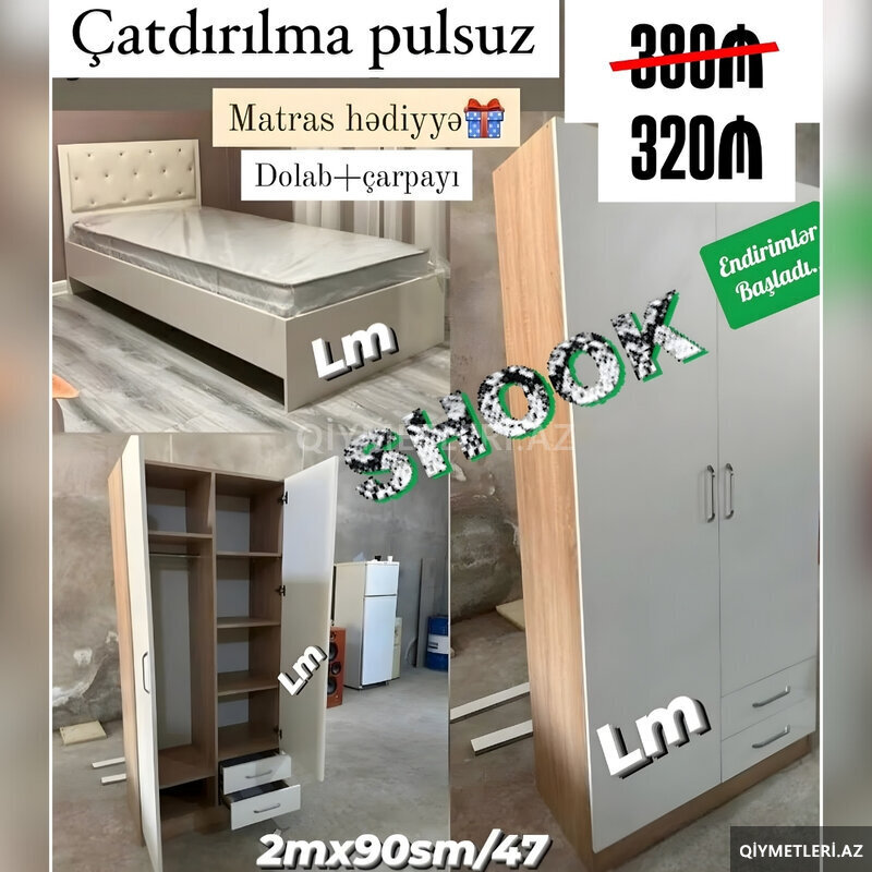 1250 Azn BEH TƏLƏB OLUNMUR. ZƏNG EDİB SİFARİŞ VERİN. ÖDƏNİŞİ EVİNİZDƏN ÖDƏYİN. DÖŞƏK VƏ ÇATDIRILMA QURULMA QİYMƏTƏ DAXİLDİR.ƏLAVƏ ÖDƏNİŞ OLUNMUR.1. Gördüyünüz bütün mebellər fabrik istehsalıdır və fabrikdən birbaşa ünvanınıza