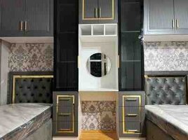 Gənc Yeniyetmə Yatağ Otağı- 2 ədəd tək nəfərlik çarpayı (boz məxmər başlıq, düyməli kapitone, qızılı çərçivə detalları)