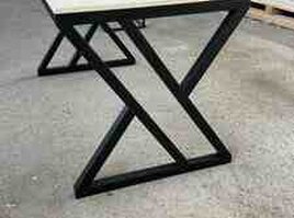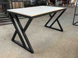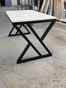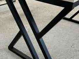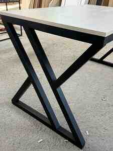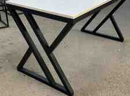 Metal ayaqlı, modern dizaynlı masa.