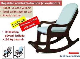300 Azn Yenidir,istifadə olunmayıb,evə yerləşmədiyinə görə satıram,çox rahat kreslodur Malın tipi: Divanlar və kreslolar Yeni: Bəli