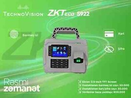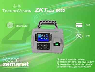 ZKTeco S922, barmaq izi, kart və şifrə ilə təhlükəsiz giriş və keçid nəzarəti təmin edən portativ biometrik cihazdır. ZKBioTime proqram təminatı ilə integrasiya olunur.