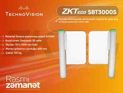 530 Azn ZKTeco SBTL8000 Turnistile ZKTeco SBTL8000 — müasir turniket keçid sistemi. Paslanmaz poladdan hazırlanmış, yüksək davamlılığı ilə seçilir. İstehsalçı tərəfindən turniketin üzərinə kart oxuyucularını inteqrasiya etmək