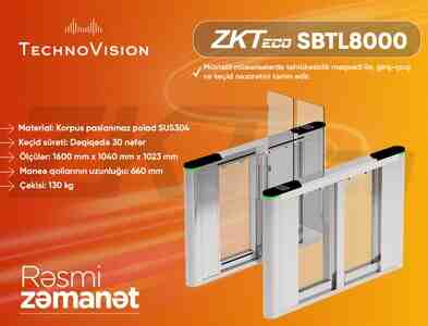 ZKTeco SBTL8000 — müasir turniket keçid sistemi. Paslanmaz poladdan hazırlanmış, yüksək davamlılığı ilə seçilir. İstehsalçı tərəfindən turniketin üzərinə kart oxuyucularını inteqrasiya etmək üçün xüsusi planşetlər quraşdırılıb.
