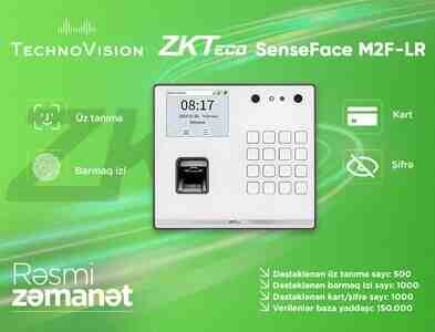 ZKTeco SenseFace M2F-LR, üz tanıma, barmaq izi, kart və şifrə ilə təhlükəsiz giriş və keçid nəzarəti təmin edən biometrik cihazdır. ZKBio Time və ZKBio CVSecurity proqram təminatı ilə inteqrasiya olunur.