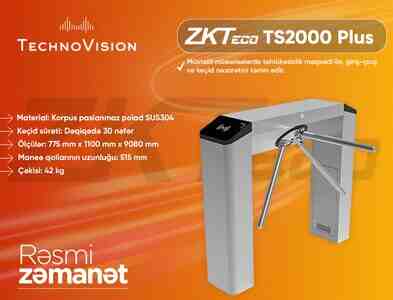 ZKTeco TS2000 Plus — müasir turniket sistemi. İstehsalçı tərəfindən turniketin üzərinə kart oxuyucularını inteqrasiya etmək üçün xüsusi planşetlər quraşdırılıb.