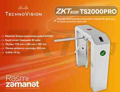 ZKTeco TS2000 PRO — müasir turniket sistemi. İstehsalçı tərəfindən turniketin üzərinə kart oxuyucularını inteqrasiya etmək üçün xüsusi planşetlər quraşdırılıb.